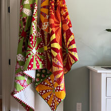 Inspired by folk art applique flowers, Peppermint Pinwheels is a perfect spring or summer project. One might ask: is it possible to make a pieced block with curved flower petals without any patterns or template? The answer is, yes! This design focuses on cutting multiple curves through layers of fabrics and sewing the pieces into free-form flower blocks. Participants will follow instructions from the book Cultural Fusion Quilts and construct blocks resembling large appliqued flowers with appliqued centers. The process is easy to learn and quick to reproduce. I will share many tips on making free-form blocks and offer many suggestions for color combinations and layouts during the class.
